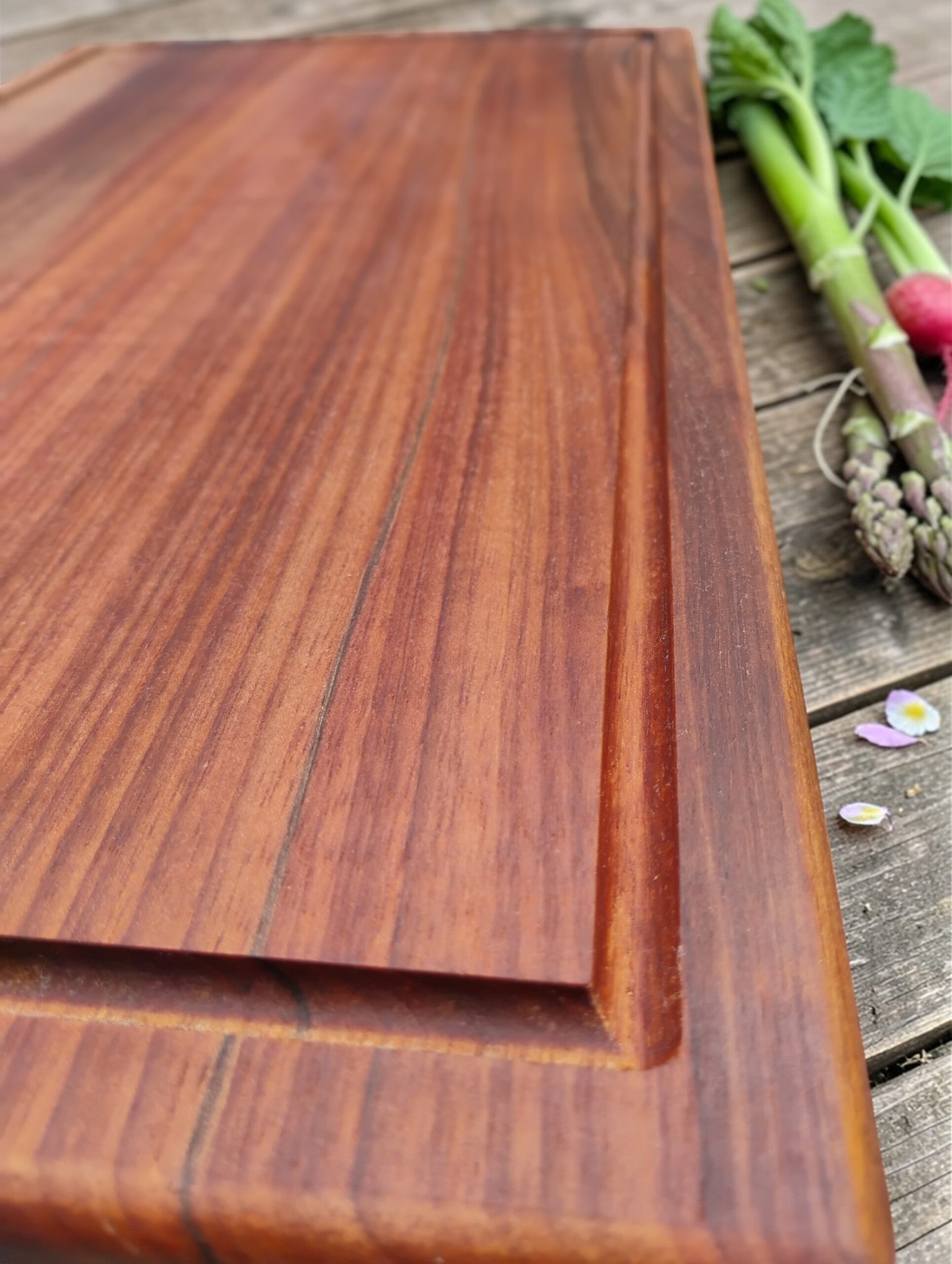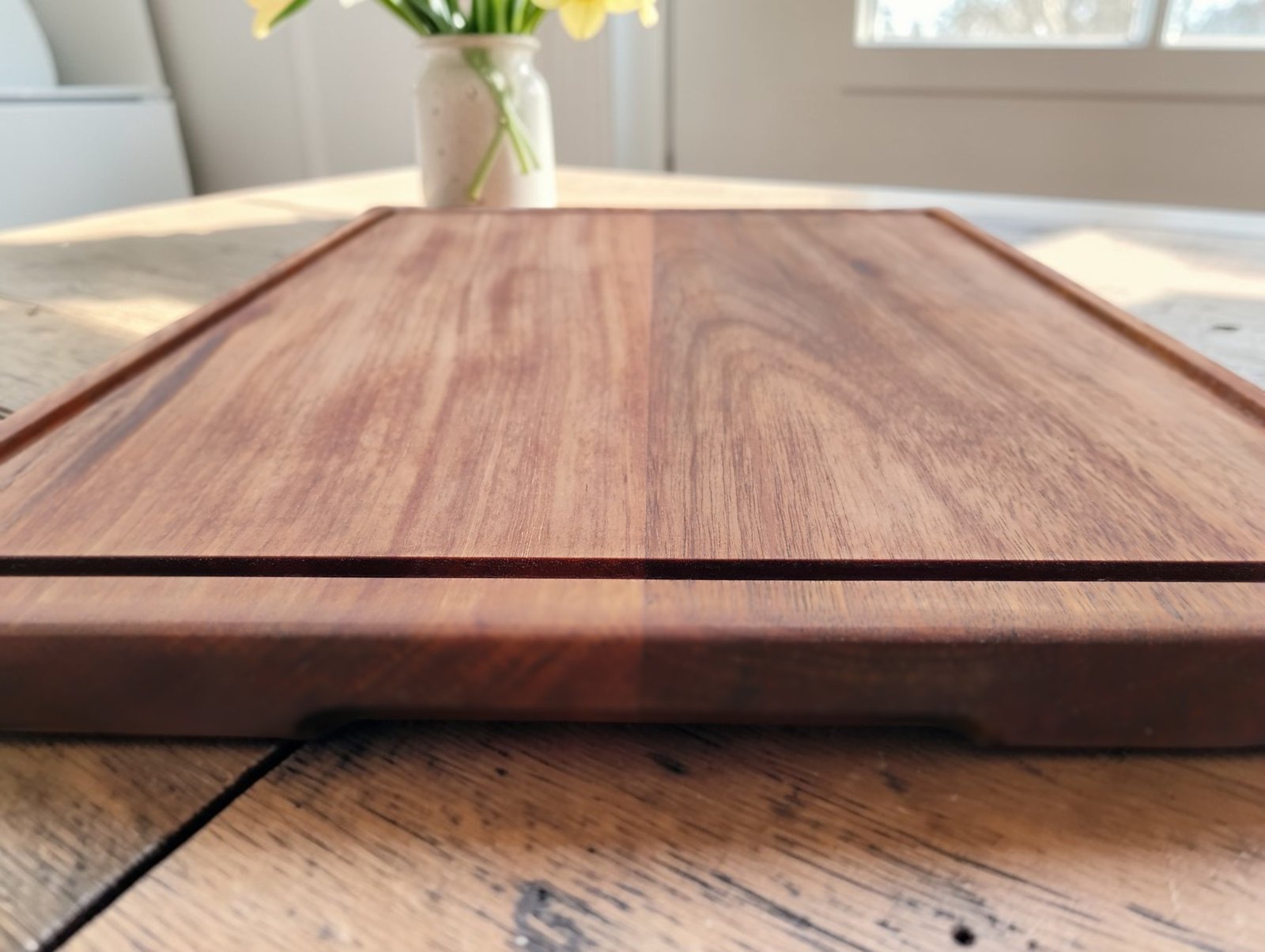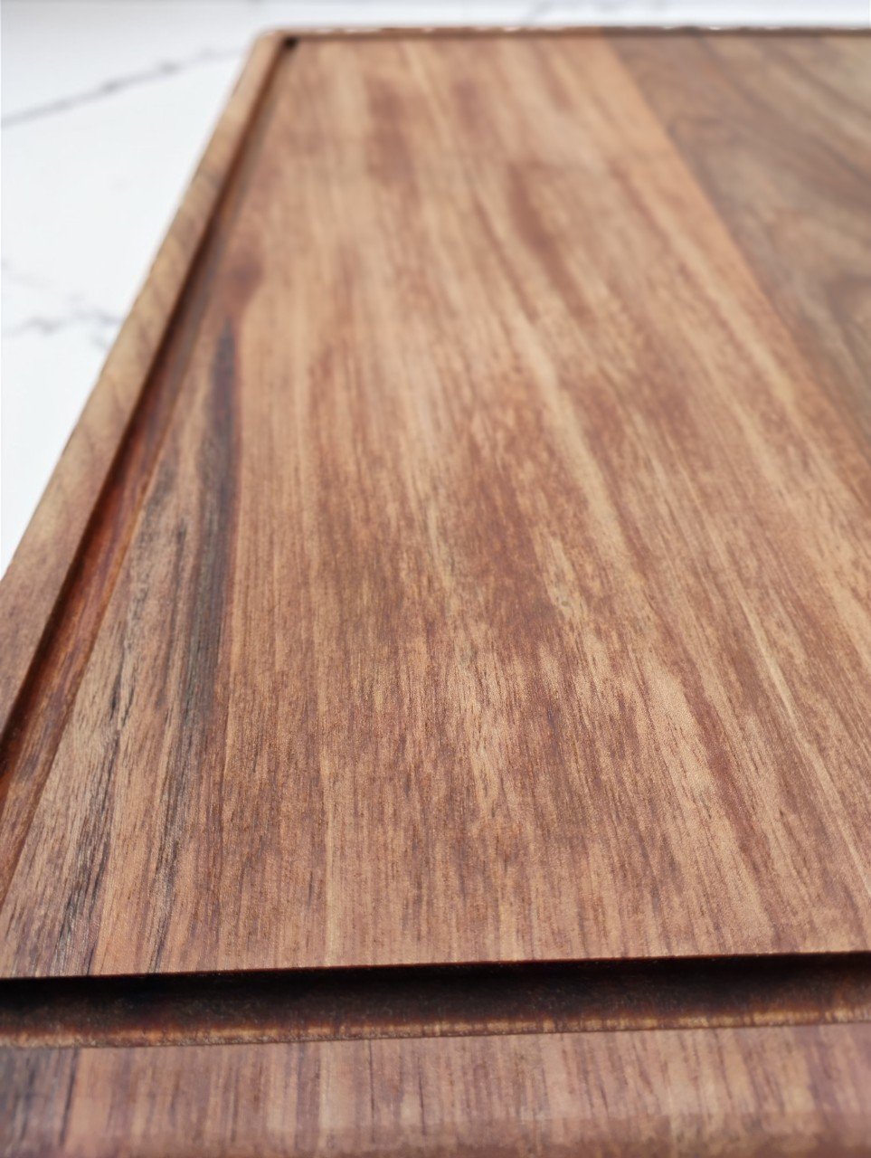 Se fabrican en maderas seleccionadas como eucalipto, cedro real y lapacho, destacadas por su resistencia y belleza natural. Debido a su amplio tamaño, cada tabla se compone de la unión cuidadosa de dos o más piezas de madera, garantizando estabilidad, durabilidad y un acabado impecable.