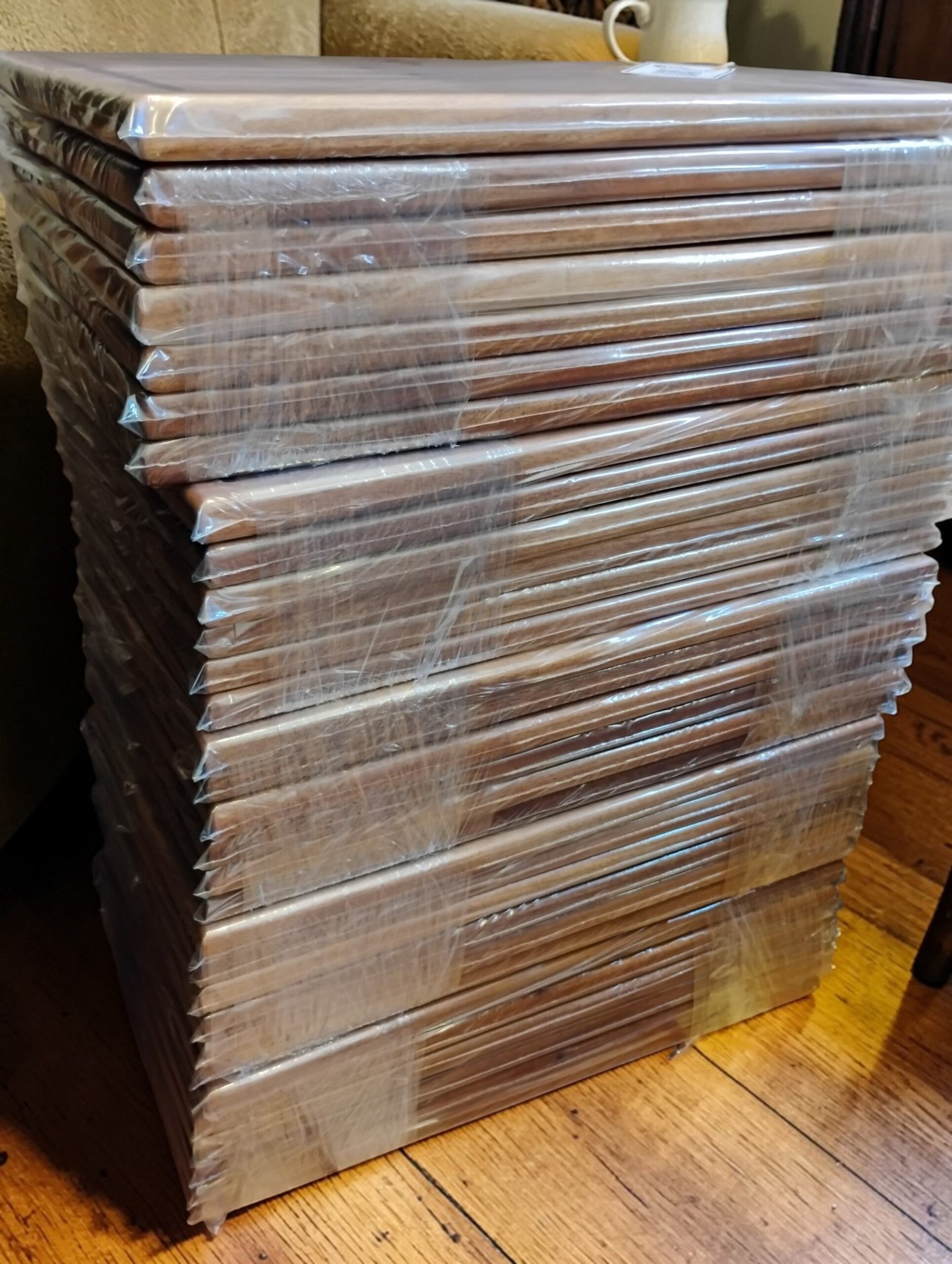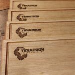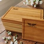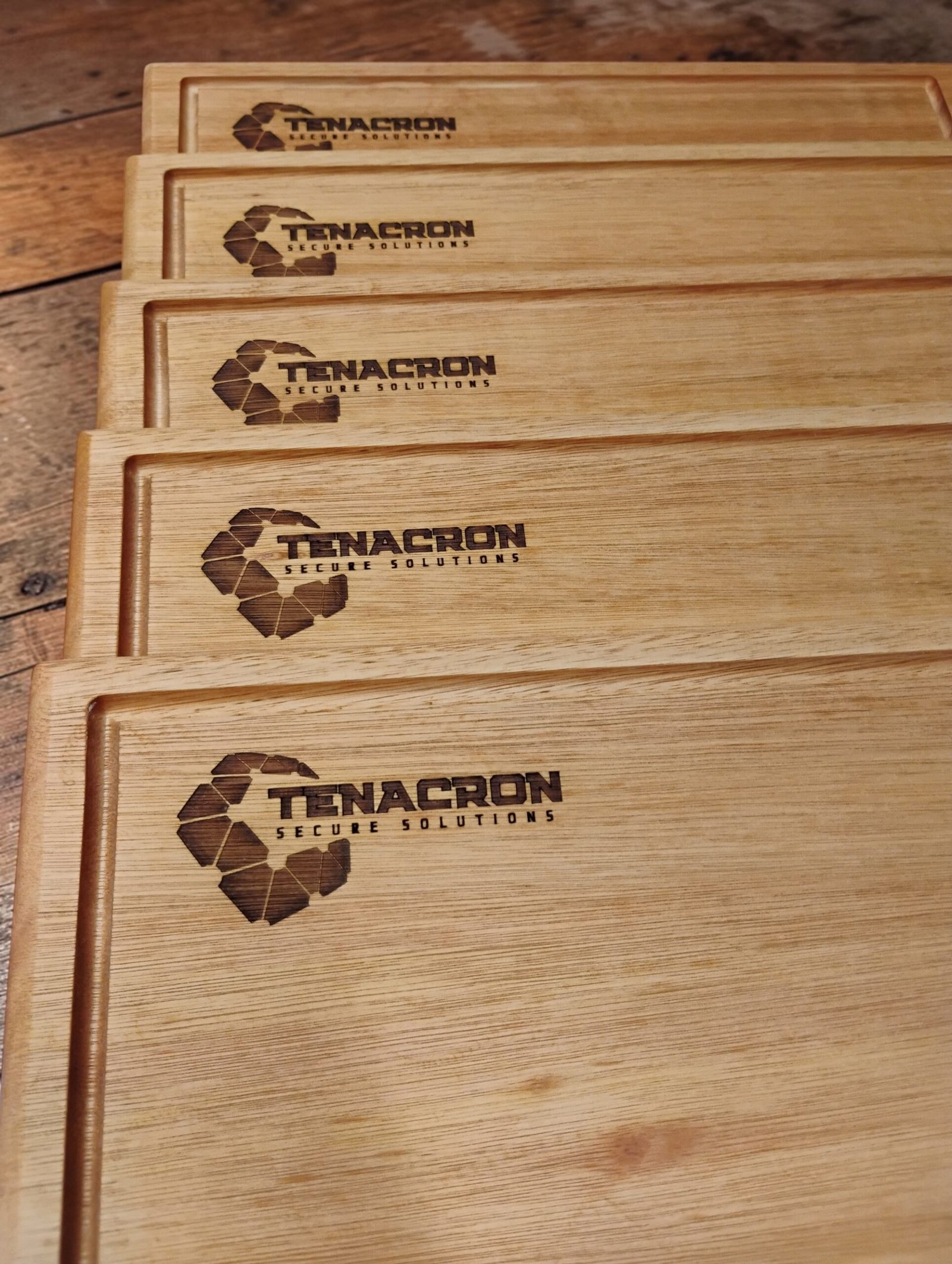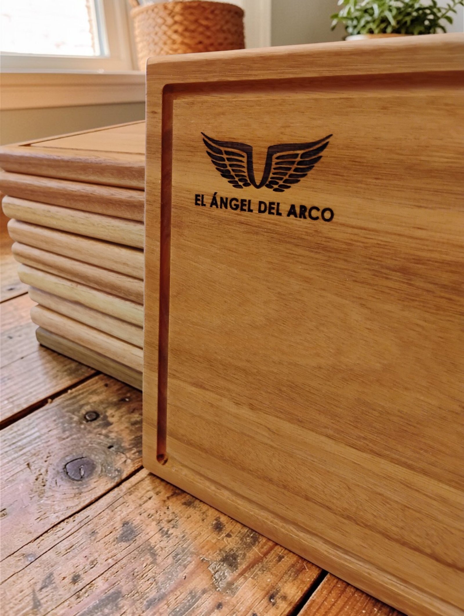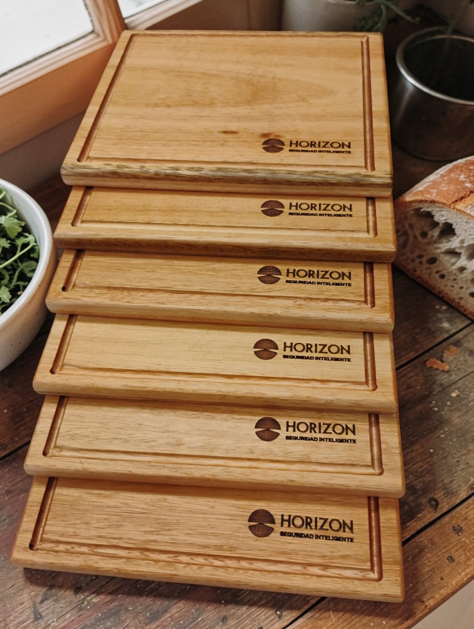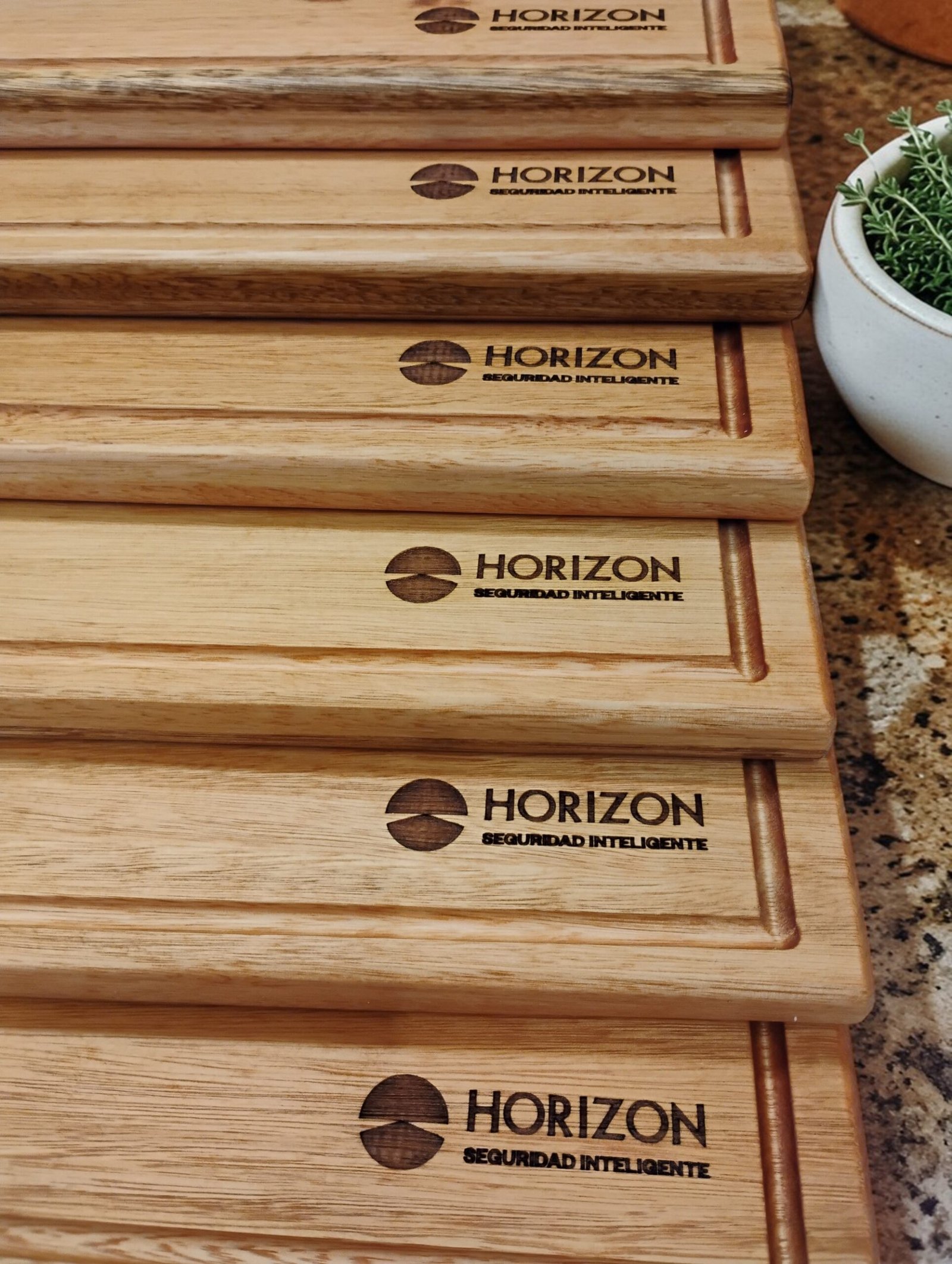 20 Tablas Artesanales en madera con logo grabado.